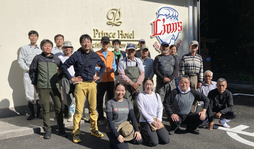 2024年に引き続き、今年も10月下旬に南林研さんをはじめとする地域のみなさまと合同で整備活動を行いました。今回は前年整備した里道の先にある展望スポットの整備作業です。